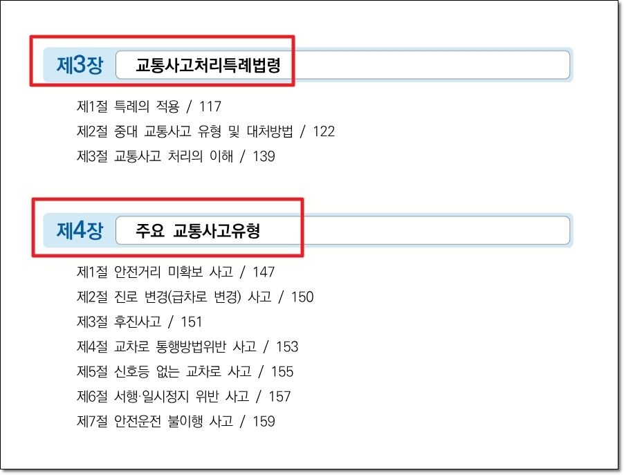 첫 번째 과목인 "교통 및 운수 관련 법규 및 교통사고 유형"에 대한 수험용 참고자료를 열어보았는데요. 목차를 보면 버스운송 일을 할 때 꼭 숙지해야 하는 내용으로 구성되어 있음을 알 수 있습니다. 여객자동차 운수사업법령, 도로교통법령, 교통사고처리특례법령, 주요 교통사고유형 이렇게 4개의 장으로 구성되어 있네요.