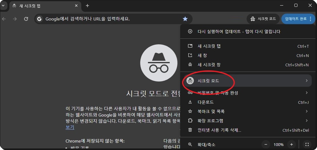 해당 방법을 사용하기 이전에 우선적으로 해야 할 일이 있습니다. 바로 사용하는 브라우저에서 시크릿 모드를 켜야 하는데요. 크롬 기준으로 우측 상단에 있는 메뉴 버튼을 누르면 "시크릿 모드" 기능을 켜는 버튼을 찾을 수 있습니다. 시크릿 모드로 전환한 상태에서 항공권을 찾아야 평소보다 더 싼 티켓을 구할 수 있다고 하네요.