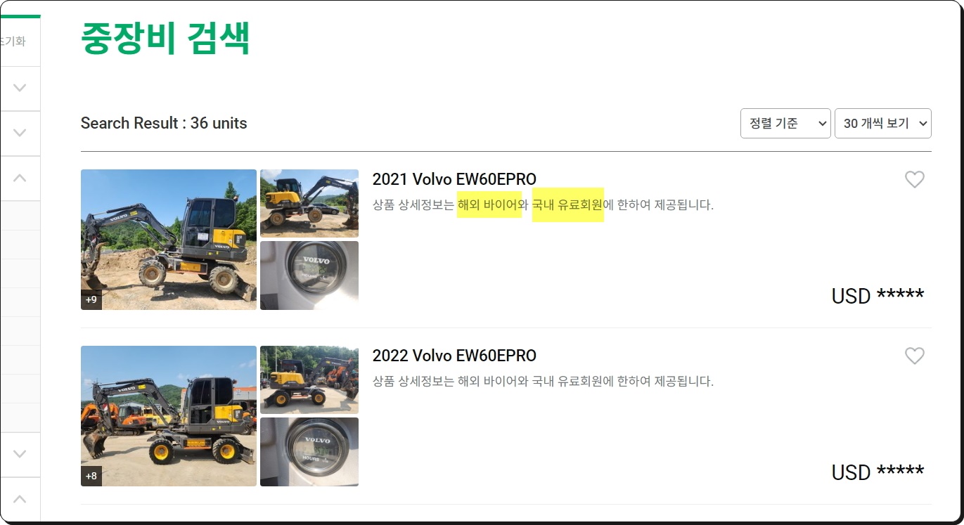 이곳의 경우에는 상품에 대한 상세 정보를 해외 바이어와 국내 유료 회원에게만 제공이 된다고 하는데요. 해당 업계에 깊이 종사하는 분이라면 이곳에서 유료 회원을 가입해 보는 것도 좋다고 생각합니다. 일시적으로 알아보는 단계라면 그린중기 매매상사와 마스쿠스 사이트로도 충분할 것 같네요.