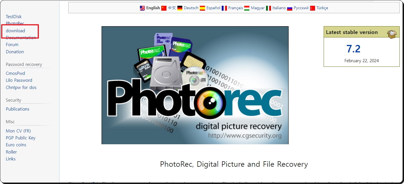 블랙박스에 들어 있던 SD카드를 복구 시키기 위해서 프로그램을 이용할 건데요. 이 프로그램은 누구나 무료로 사용할 수 있는 프리웨어 입니다. 프리웨어임에도 불구하고, 2024년에도 업데이트가 될 정도로 꾸준히 관리가 되고 있는 소프트웨어죠. 그럼 제작자 사이트인 CGSecurity에 접속하여 프로그램을 다운로드 받아보도록 하겠습니다.