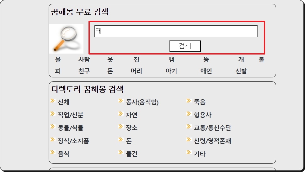 사이트에 접속하면 자신이 꾼 것과 유사한 내용을 찾아야 합니다. 주요 대상에 해당하는 것을 검색하거나 카테고리 선택을 해보세요.
