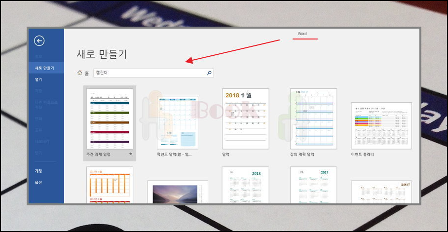 마이크로 소프트 워드 프로그램을 열고, 이전에 했던 방법대로 진행해보세요. 다운로드 할 수 있는 워드용 달력이 나타난답니다. 엑셀용과 디자인이 달라요. 이런 식으로 수십가지 문서 파일을 다운로드 받아보시면 됩니다.