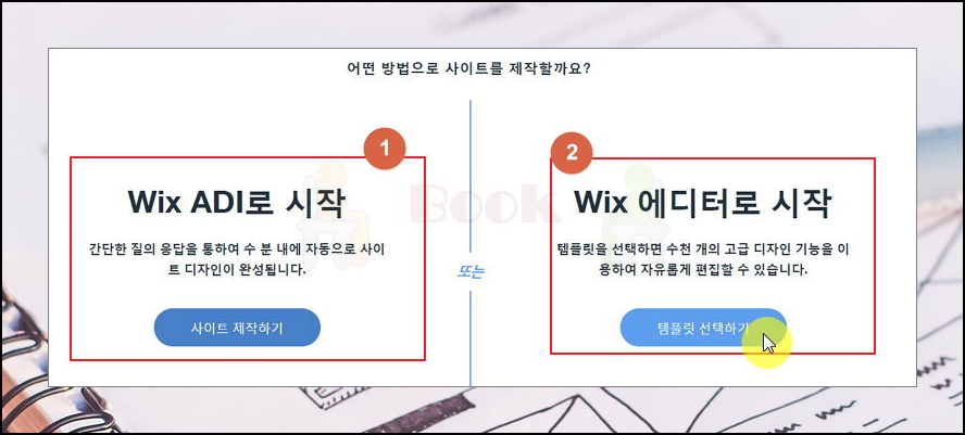 3. 나에게 맞는 제작 방식 골라보세요. wix에서는 2가지 방법을 통해 사이트 제작을 할 수 있는데요. 간단한 질문에 답만 함으로써 홈페이지를 만들 수 있는 Wix ADI가 있고요. 템플릿을 선택한 후 자신의 취향에 맞게 꾸밀 수 있는 Wix 에디터를 사용하는 방법이 있어요. 두 가지 모두 웹사이트 제작 관련 지식이 없어도 될 정도로 쉬운 방법이오니 마음에 드는 것 위주로 선택해 주세요.