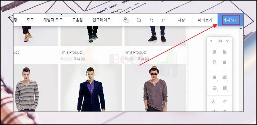 10. 세상에 나의 작품 선보여보세요. 홈페이지 꾸미기를 다했으면 Wix 사이트 우측 상단에 있는 [게시하기]를 클릭해 보세요.
