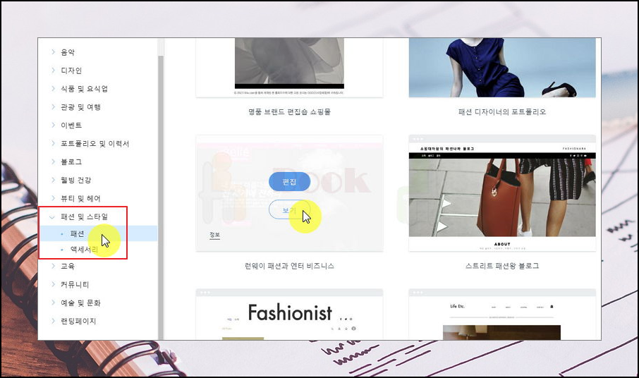 4. 다양한 주제의 템플릿 살펴보세요. 저는 Wix 에디터를 통한 제작방법을 선택했어요. 가장 먼저 템플릿을 선택해야 하는데요. 선택할 수 있는 템플릿의 개수가 정말 많아요. 음악, 동영상, 디자인, 식품, 관광, 블로그, 패션, 예술, 커뮤니티, 교육 등 여러 주제에 관련된 템플릿을 살펴볼 수 있는데요. 마음에 드는 것을 하나 선택해 주세요.