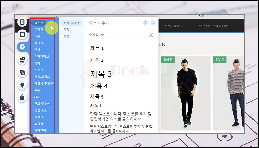 8. 페이지 구성으로 완성도 높여보세요. 메뉴와 페이지를 통해 홈페이지 구성을 만들어 보세요. 회원가입 페이지, 쇼핑몰 페이지 등 용도에 맞는 메뉴와 해당 메뉴를 클릭했을 때 나타나는 페이지를 추가해 보세요.