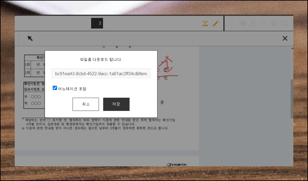 브라우저에서 열린 화면에서 워드프로세서처럼 편리하게 이혼서류를 작성할 수 있어요. 예전에는 키보드 타이핑이 가능했는데요. 요즘에는 그리기 기능만 사용할 수 있습니다. 이런 경우에는 그냥 인쇄를 해서 작성하는 것이 나을 것 같아요. 마우스를 이용하여 내용을 그리거나 테블릿PC를 이용하여 전자 필기도구를 하용하는 방법도 있습니다. 모든 내용을 입력하신 후에는 'PDF 저장' 버튼을 눌러 간단히 파일로 저장할 수 있어요.