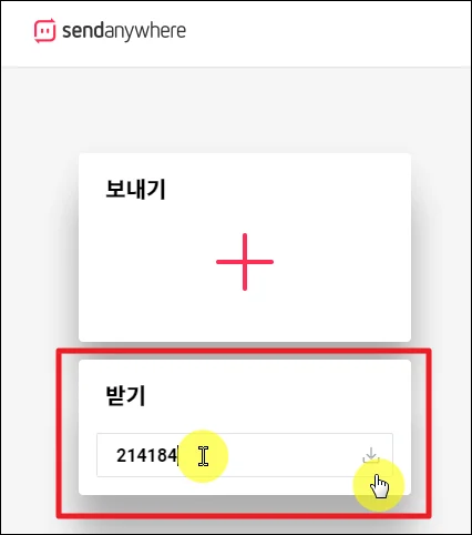 해당 사이트에 접속하면 다음과 같이 보내기와 받기를 할 수 있는 영역이 있습니다. 아래에 있는 받기 부분에 아이폰 화면에 나타난 6자리 숫자키를 입력해 주세요. 그 다음 오른편에 있는 다운로드 버튼을 클릭합니다. 아이폰에서 PC로 데이터 전송이 진행되는데요. 잠깐이면 끝납니다.
