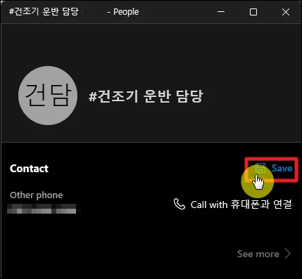 다운 받은 vcf 파일을 클릭하면 다음과 같이 내용을 볼 수 있는데요. 여기에서 Save 버튼을 누르면 안에 들어 있는 내용을 살펴보거나 윈도우 people 프로그램에 저장할 수 있습니다. 이것을 다시 다른 스마트폰으로 옮겨서 연락처를 등록하게 할 수도 있고요.