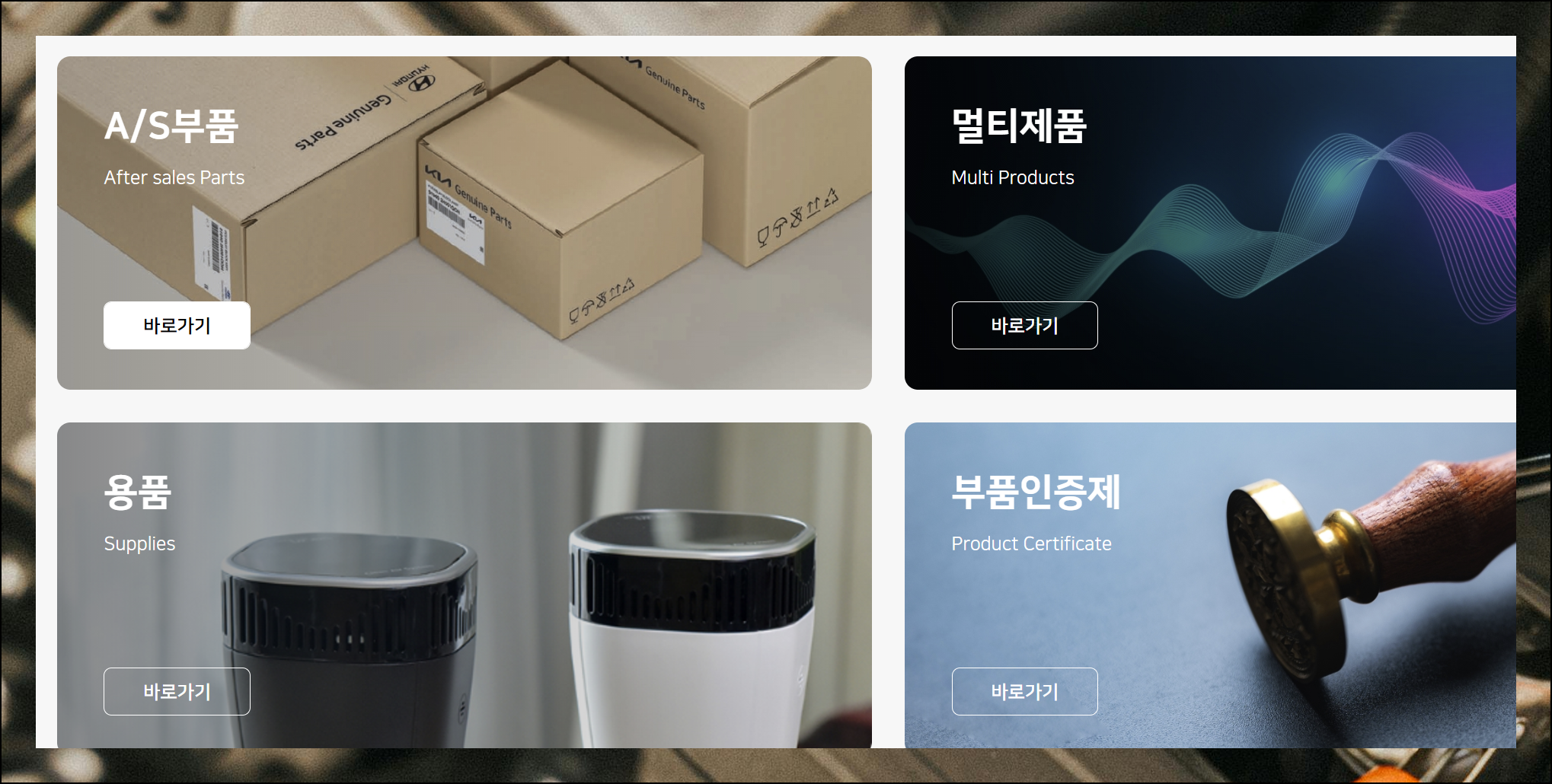 새로운 페이지에서는 멀티제품, 용품, 인증제 등 다양한 메뉴가 있습니다. 부품 회를 위해서는 가장 첫 번째에 위치한 AS부품 메뉴를 선택해주세요. 기아자동차의 제품 목록을 효율적으로 검색할 수 있어요.