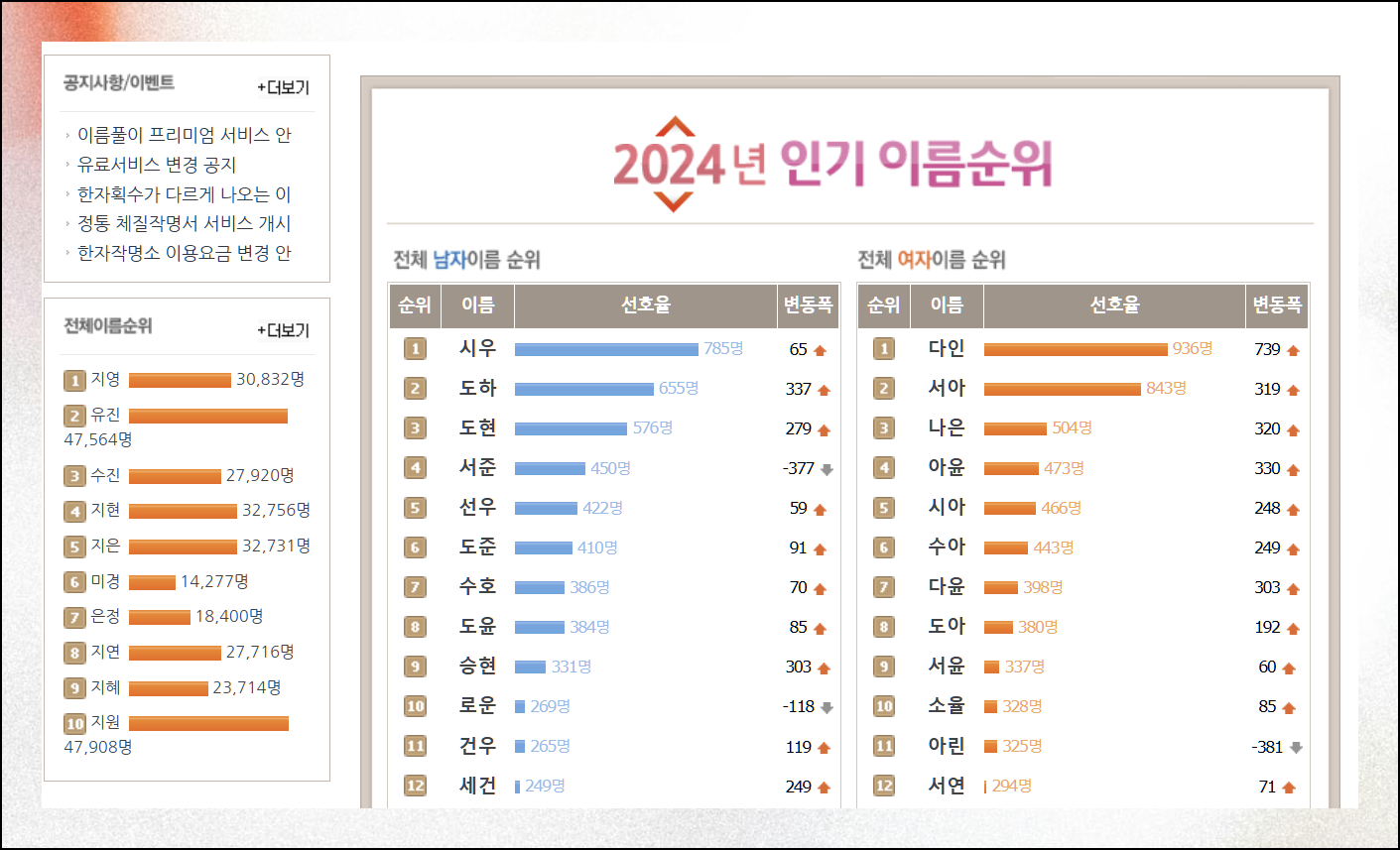 예쁜 여자 남자 이름 모음, 무료 작명 서비스로 찾는 인기 순위