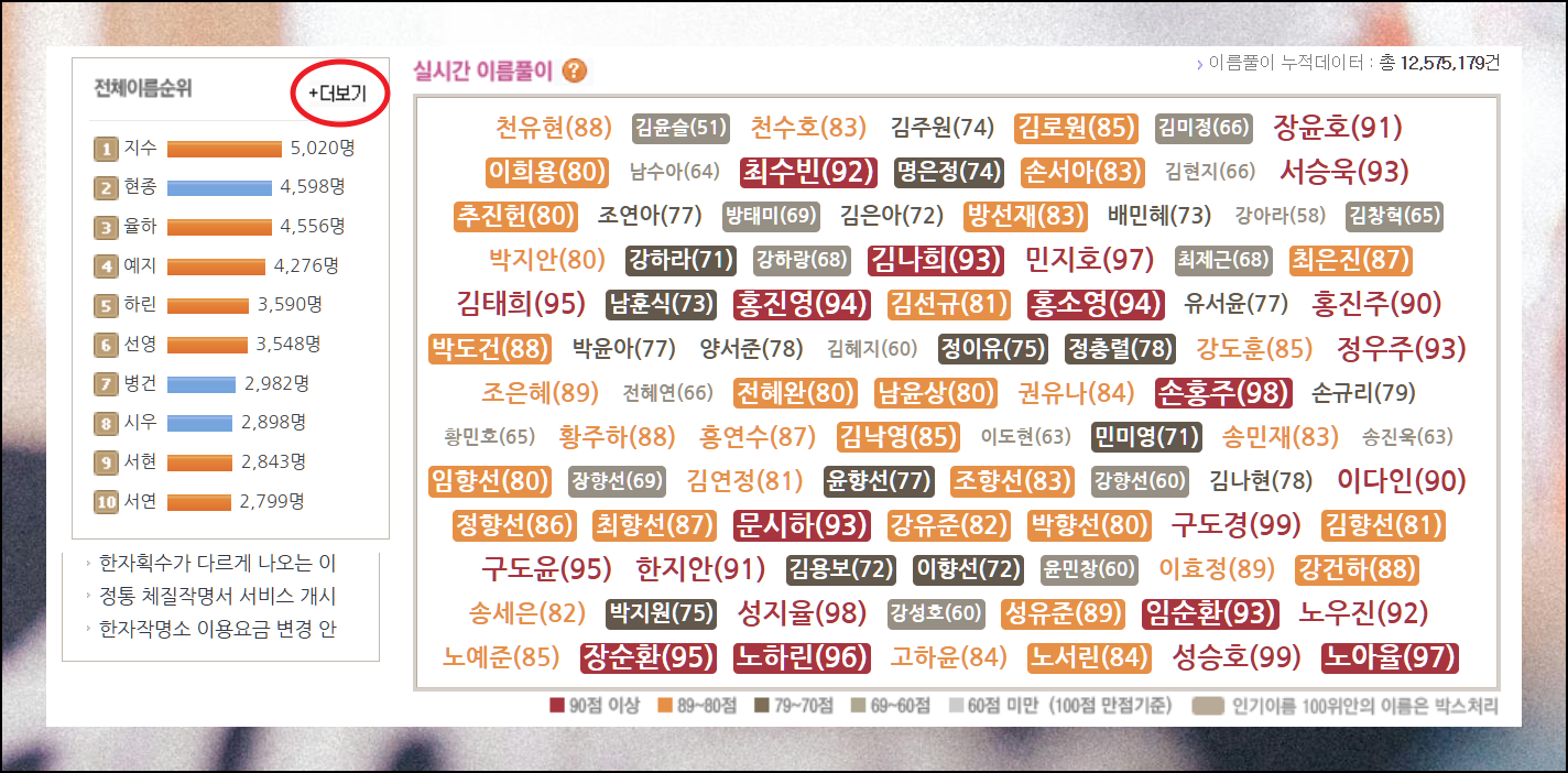 네임소프트에서는 실시간으로 인기 있는 여자 이름도 볼 수 있어요. 더보기 버튼만 누르면 지금 많은 분들이 찾아보는 이름 모음을 확인할 수 있죠. 다른 부모님들의 선택도 참고하면 좋을 것 같네요.