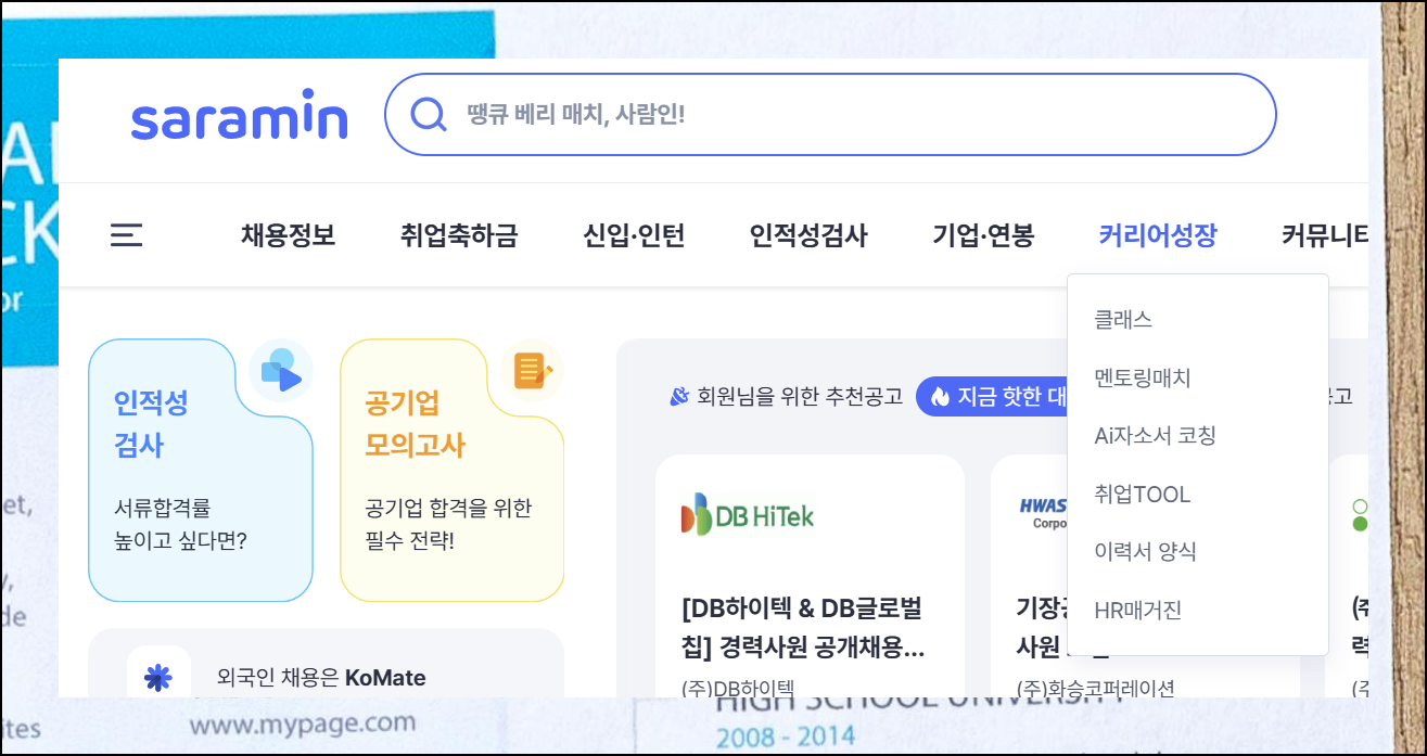 사람인 메인 화면에서 커리어성장과 이력서 양식 메뉴를 통해 다양한 서식을 만나볼 수 있습니다. 최근에는 AI 자기소개서 코칭 서비스도 함께 제공되고 있어요. 이를 활용하면 더욱 전문적인 문서 작성이 가능할 거예요.