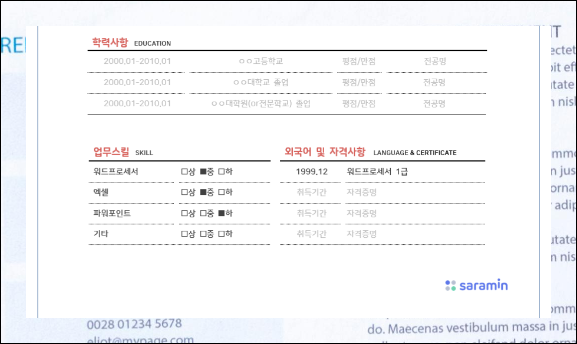 전문가들이 검증한 다양한 템플릿으로 여러분의 역량을 효과적으로 어필할 수 있습니다. 현재 67종의 맞춤형 양식이 준비되어 있어 원하는 분야와 스타일에 맞는 양식을 골라 사용하실 수 있어요.