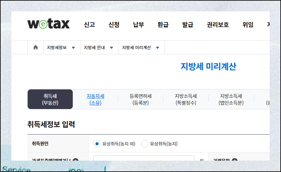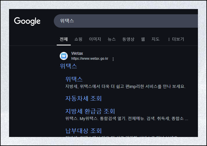 이번 시간에 이용할 도구는 위택스(wetax.go.kr)에서 쉽게 이용할 수 있어요. 공식 사이트에 접속하면 다양한 세금 산정 방법을 이용할 수 있습니다. 인터넷 주소창에 'wetax.go.kr'을 입력하거나 검색창에 '위택스'를 검색하면 쉽게 접속할 수 있어요.
