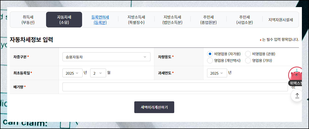 자동차세 계산 방법, 2025년 기준 자동으로 결과보기