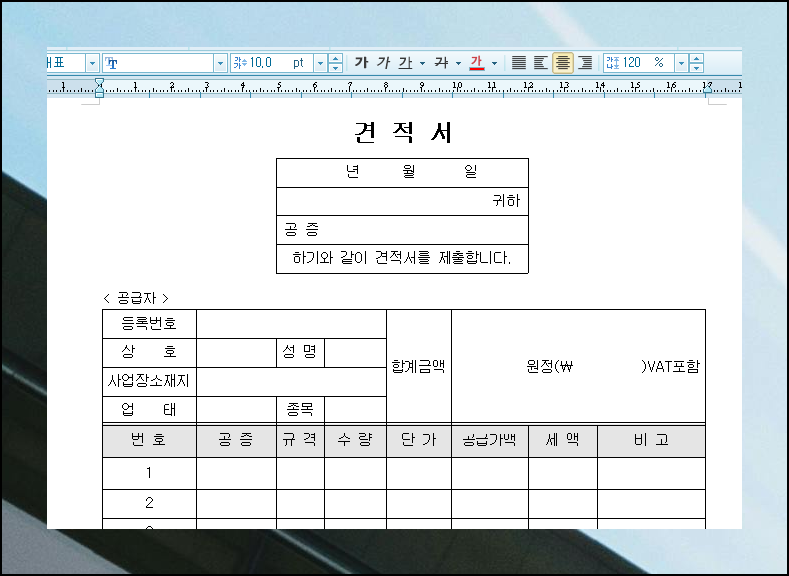 견적서 양식 hwp 무료 다운로드, 7가지 업종별 맞춤 서식