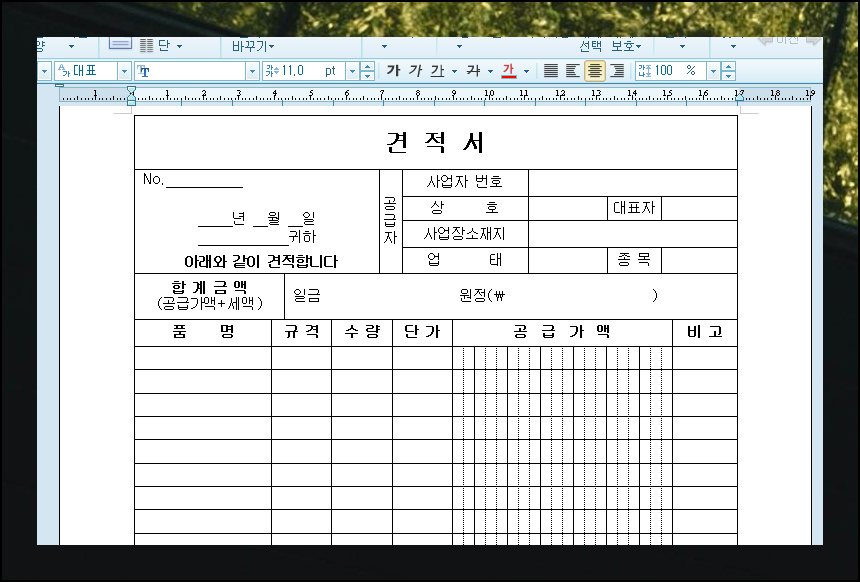 비즈니스 문서 작성에 많은 시간을 쏟고 계신가요? 다양한 상황에 맞는 견적서 양식 파일을 이용해 보세요. hwp 형식으로 되어 있는 무료 템플릿을 바로 다운로드 받을 수 있습니다. 여러 종류로 되어 있는데요. 각자 업종별 특성에 맞게 최적화되었어요.