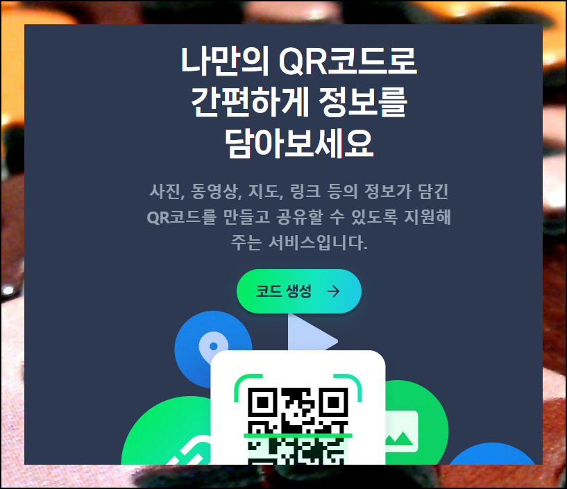 인터넷 사이트에서 무료로 제공하는 서비스를 활용하면 전문가가 아니더라도 누구나 손쉽게 자신만의 코드를 제작할 수 있어요. 청첩장, 명함, 홍보물 등 일상생활의 다양한 분야에 활용 가능해요.