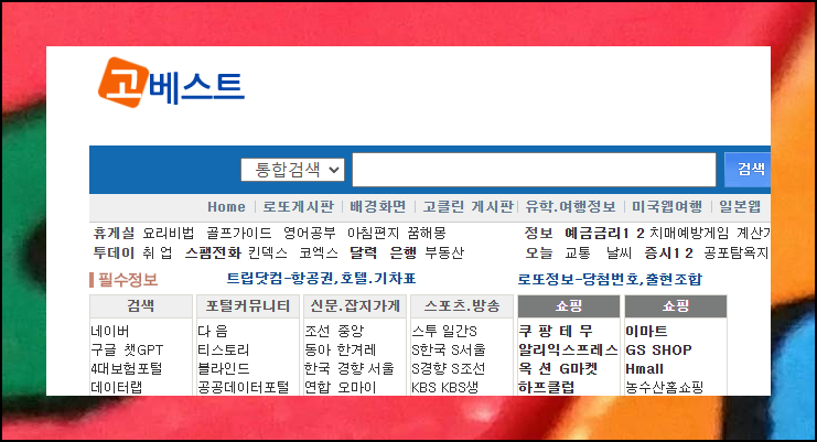 고베스트 웹사이트에서는 배경화면, 사진정보, 게시판, 여행 정보 등 다채로운 콘텐츠를 만나볼 수 있어요. 로또 예상번호 자동생성기를 이용하려면 화면 상단에 있는 "통합검색" 표시 아래에 있는 "로또 게시판"을 선택하면 됩니다.