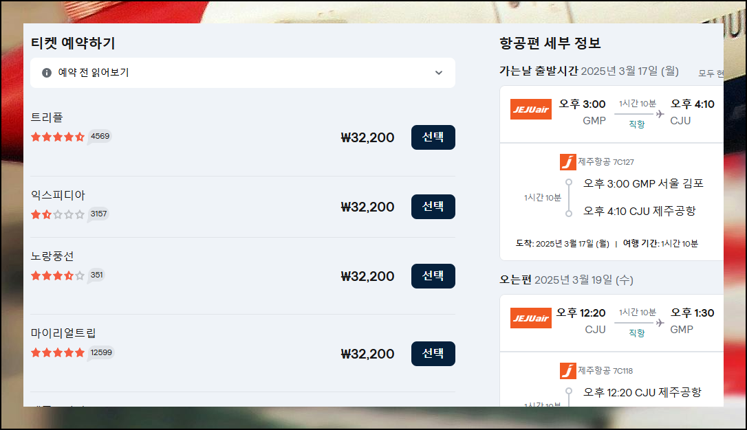 항공사 선택 후에는 예약을 진행할 여행사를 선정해야 합니다. 평소 자주 이용하는 업체나 고객 평점이 높은 여행사를 고르는 것이 좋아요. 각 여행사마다 제주 항공권에 대한 혜택이나 수수료 정책이 상이할 수 있으니 이 부분도 꼼꼼히 확인하세요.