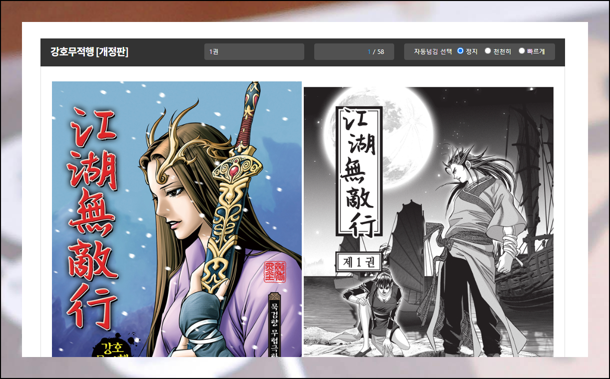 저는 스포츠조선에서 볼 수 있는 강호무적행을 선택했는데요. 만화 감상을 진행해보면 아시겠지만, 자동 넘김 기능을 제공하고 있습니다.