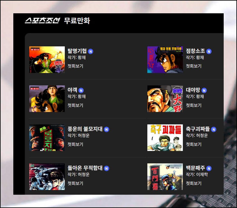 스포츠조선 무료 만화 바로가기, 수십 가지 작품 완결본 한눈에 보기