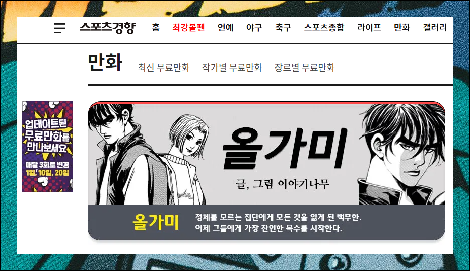 스포츠 신문 웹사이트에서 이제는 연재중인 것뿐만 아니라 완결된 만화까지 모두 볼 수 있어요.