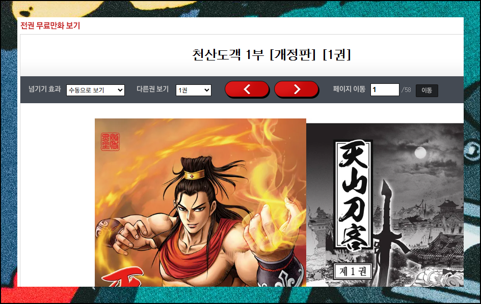 현재 1위는 천산도객 1부, 2위는 자객표사 1부, 3위는 혈곤향이 차지하고 있답니다. 클릭 한 번으로 바로 감상이 가능하다는 것이 인터넷 만화방 서비스의 매력이에요.