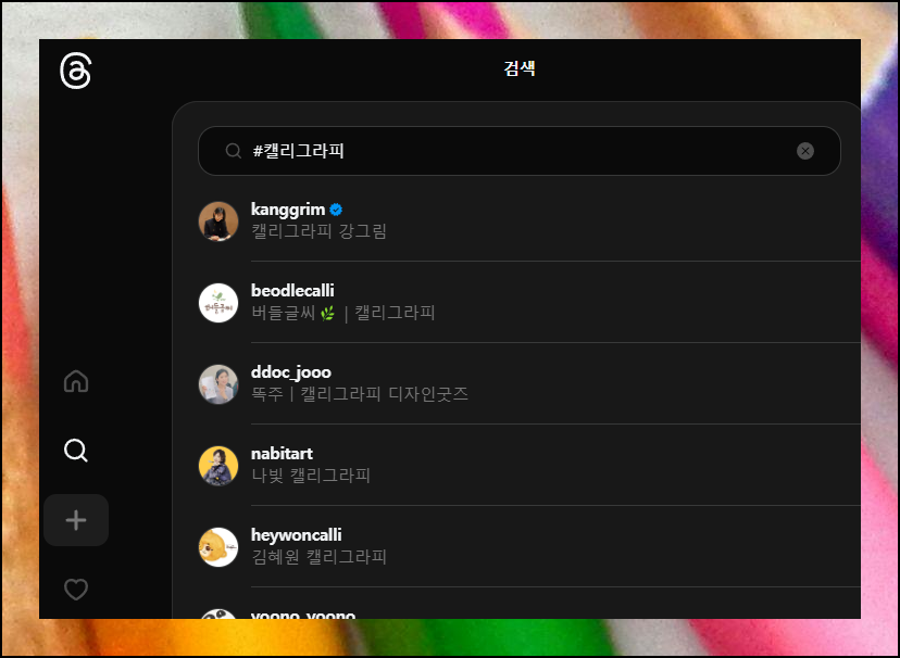 스레드 웹사이트에 접속하면 화면 상단에 검색창이 보입니다. 이 창에 '캘리그라피'를 입력하고 엔터키를 누르면 탐색이 시작됩니다. 해시태그를 활용하면 더 정확한 결과물을 얻을 수 있어 원하는 손글씨 작품을 신속하게 찾을 수 있어요.
