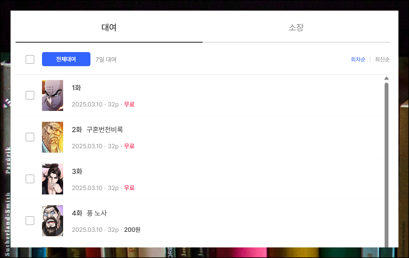 보기 버튼을 눌러보니 깔끔한 구성으로 무협만화를 볼 수 있게 되어 있는데요. 화질이 매우 높은 수준임을 알 수 있습니다.