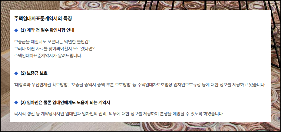 법무부 표준 계약서는 여러 장점을 가지고 있어요. 체결 이전에 반드시 점검해야 할 필수 확인사항들이 체계적으로 정리되어 있고 보증금 보호 관련 중요한 내용도 상세히 포함되어 있습니다.