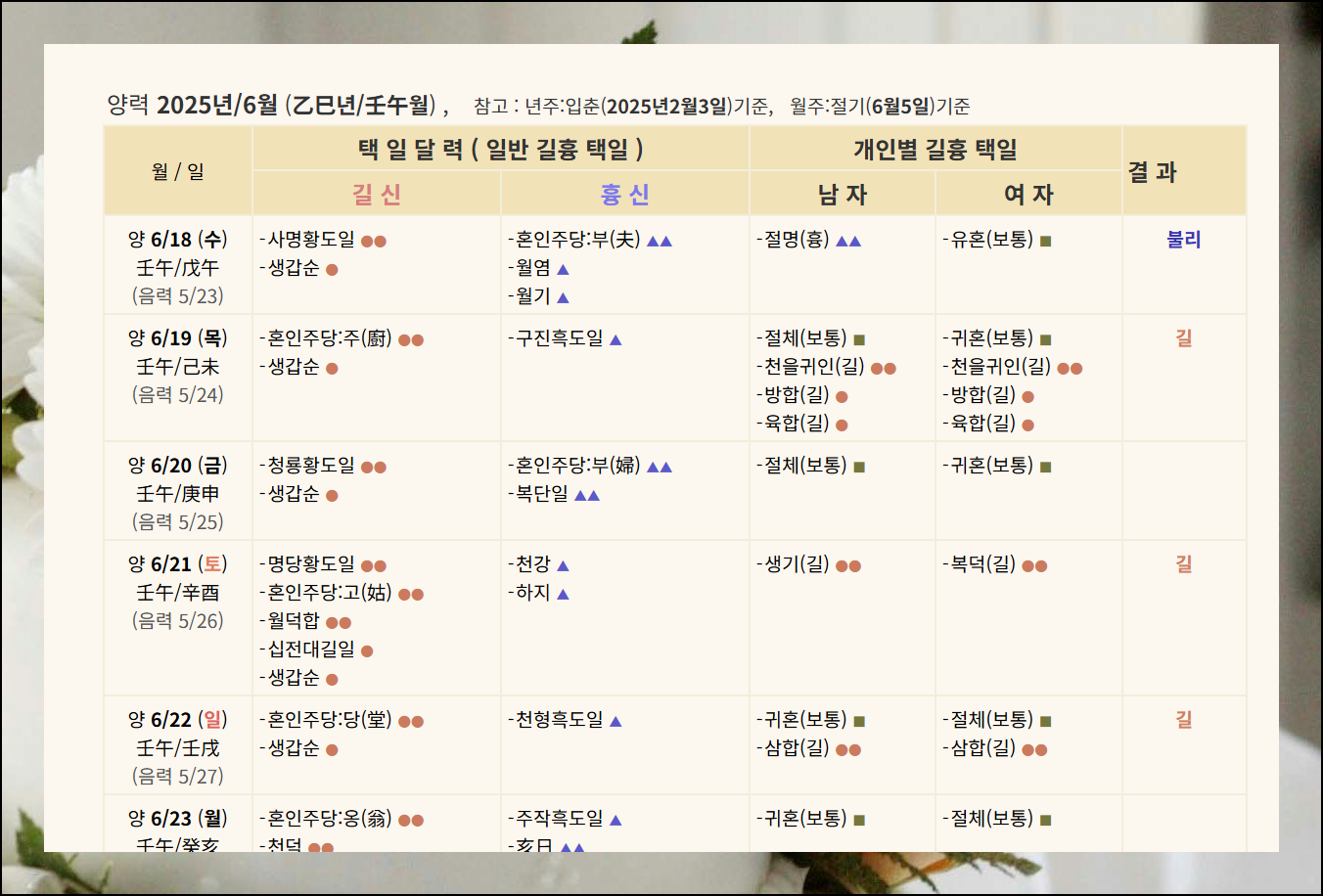 2025년 결혼 길일 확인하기, 전통 택일법으로 행복한 날 고르는 법
