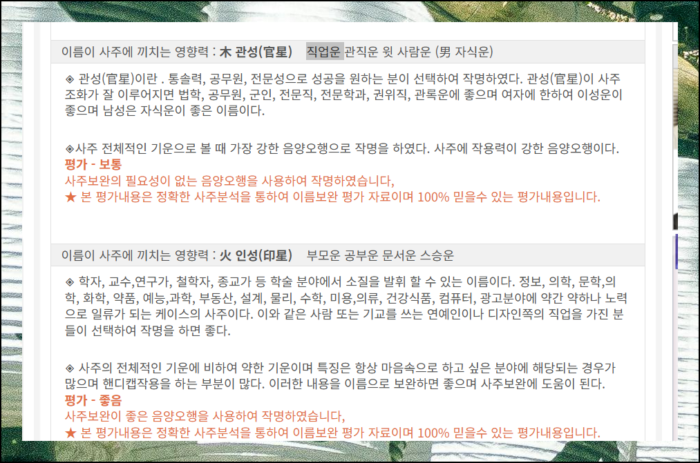 사주학과 작명학, 주역학을 종합해서 한자 성명의 의미를 심도 깊게 분석하는 방법을 알려드렸어요. 인터넷만 연결되어 있으면 집에서 편안하게 언제든지 활용할 수 있는 서비스예요. 무엇보다 완전 무료로 제공되는 뜻풀이 서비스라는 점이 가장 큰 매력이에요.