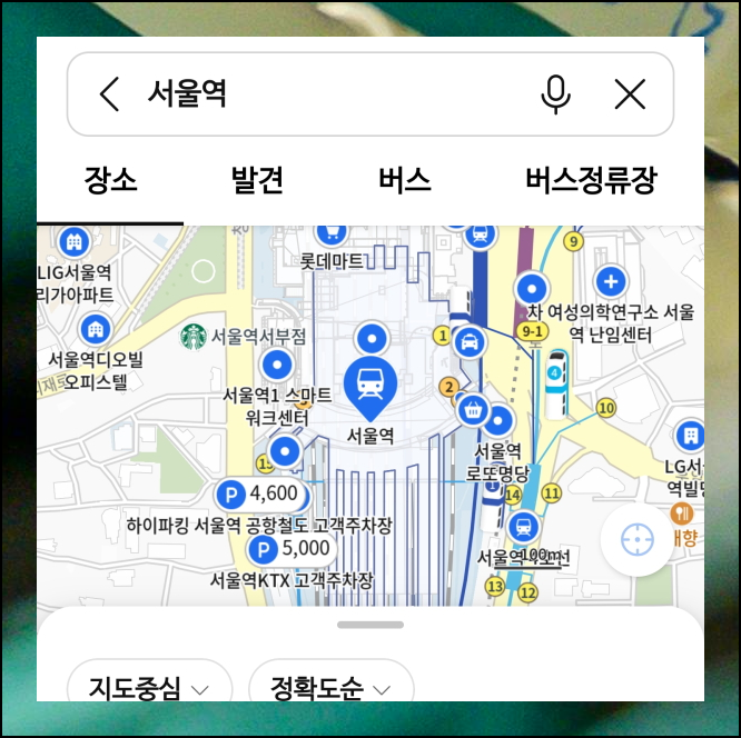 카카오맵 어플을 열고, 지적도 열람이 필요한 지역을 찾아보겠습니다. 상단에 있는 검색창을 활용하면 됩니다. 예를 들어 서울역 근처 지역을 알아보고 싶다면 서울역이라고 입력하세요. 검색 버튼을 누르면 해당 위치로 지도가 이동합니다. 원하는 정확한 위치가 나타나면 다음 단계로 넘어갈 수 있어요.