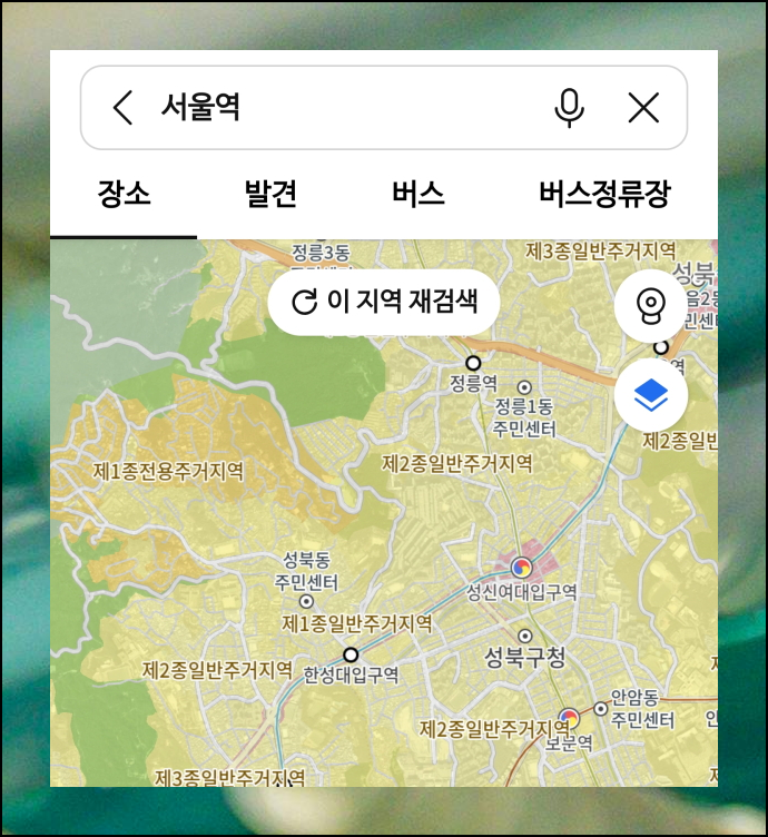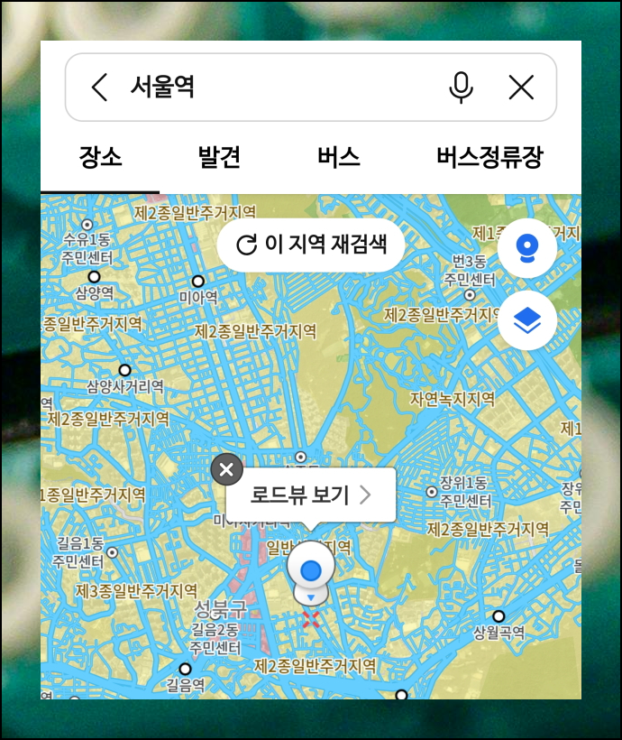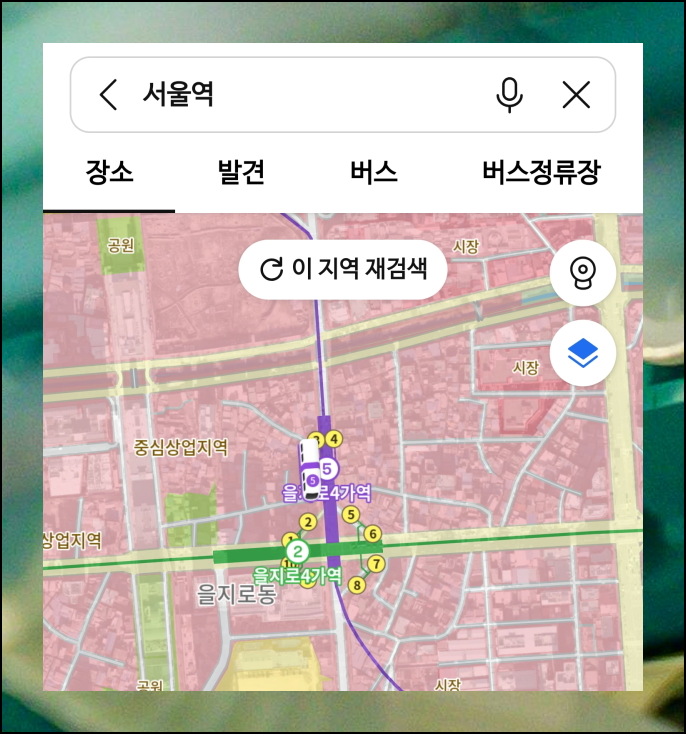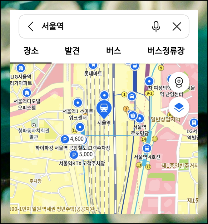 카카오맵 어플을 열고, 지적도 열람이 필요한 지역을 찾아보겠습니다. 상단에 있는 검색창을 활용하면 됩니다. 예를 들어 서울역 근처 지역을 알아보고 싶다면 서울역이라고 입력하세요. 검색 버튼을 누르면 해당 위치로 지도가 이동합니다. 원하는 정확한 위치가 나타나면 다음 단계로 넘어갈 수 있어요.