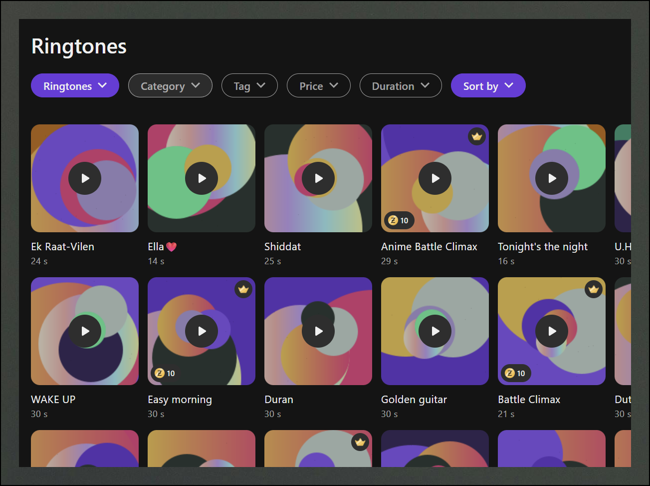 홈페이지에 접속하신 후 "Ringtones"라는 메뉴를 찾아서 클릭해주세요. 아이폰 전용이나 안드로이드 전용 링톤 섹션으로 바로 이동할 수 있어요. 특별히 기종을 구분하지 않고, 모든 오디오 파일을 둘러보고 싶다면 그냥 "Ringtones"를 선택하면 됩니다. 검색 결과가 나오면 정말 많은 자료들이 화면에 나타날 거예요.