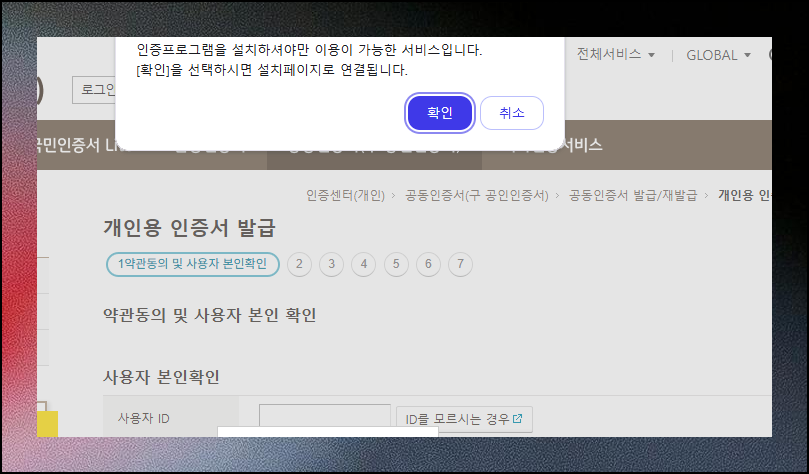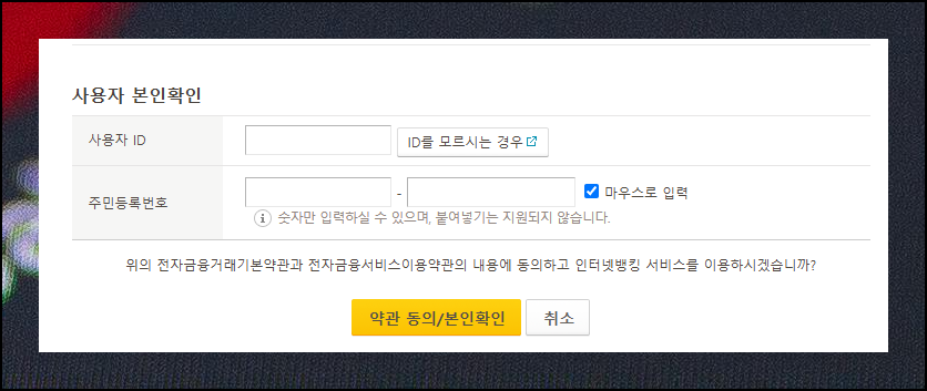 앞서 로그인을 건너뛰었다면 본인 확인 과정이 필요해요. 개인 아이디와 주민등록번호만 있으면 간편하게 확인할 수 있어요. 다음 단계들은 공인인증서 페이지에서 친절하게 안내해주니 그대로 따라가시면 되요.