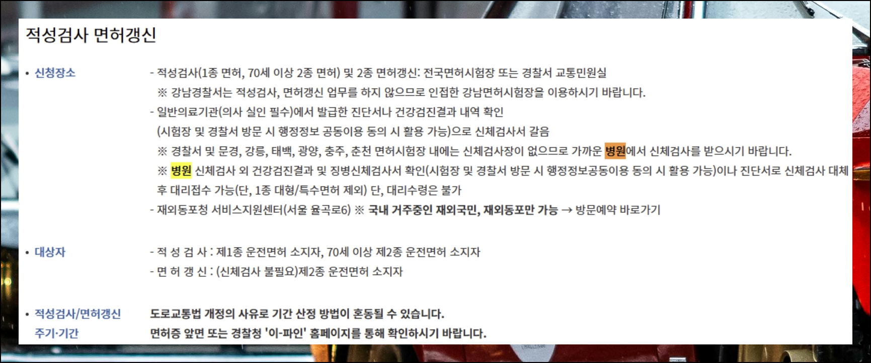 운전면허 적성검사 지정병원 전국 발급기관 총정리