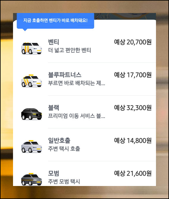카카오t에서는 일반 차량 외에도 다양한 프리미엄 차량 부르기 가능해요. 벤티, 블루 파트너스, 블랙, 모범택시 등이 대표적입니다. 응급상황이나 새벽시간, 이른 아침 같은 특수한 시간대에 택시 부르기 가능하기 때문에 여러 모로 유용합니다. 안전을 우선시하는 분들에게는 더욱 도움이 될 거예요. 이런 식으로 안전하고 편리하게 이용해보세요.