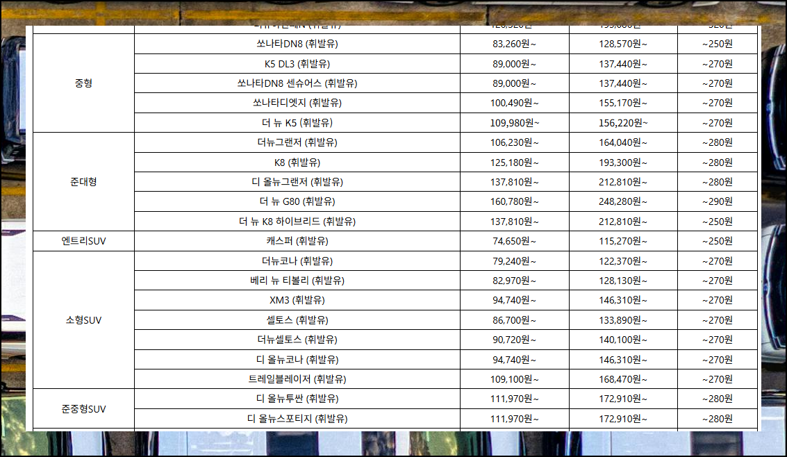 | 기아 자동차 차종별 가격표 실구매금액 (0) | 2026.03.16 |