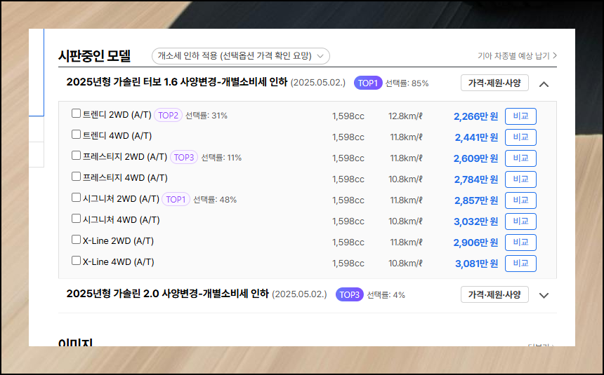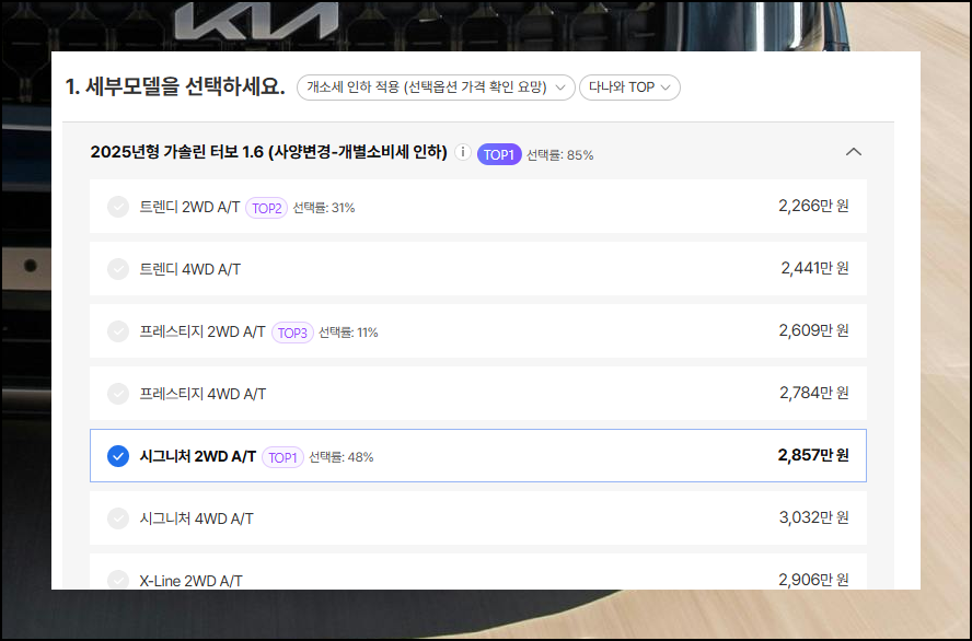 아직 정하기 어렵다면 셀토스 베스트 3 모델을 참고해보니다. 다른 구매자들이 많이 선택한 이유를 알아볼 수 있어요.