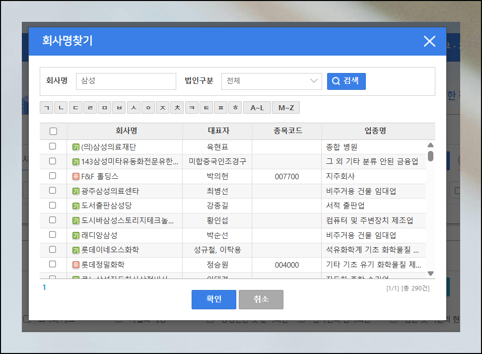 "삼성"으로 검색해보면 우리가 아는 삼성전자뿐 아니라 이름이 유사한 업체들까지 모두 나타나요. 결과 중에서 정확한 회사를 찾았다면 해당 상호등록 정보를 클릭하면 됩니다. 비슷한 이름의 회사들이 많을 수 있으니 주의깊게 선택해야 해요.