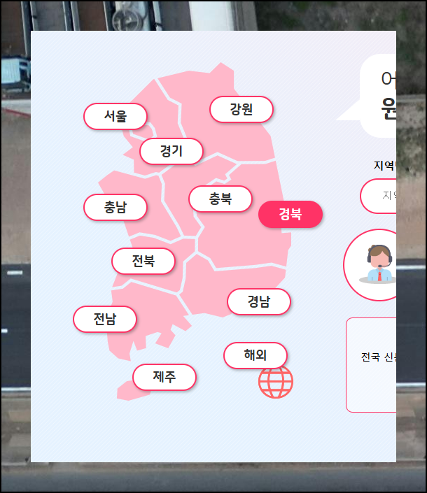 이럴 때는 별도의 방법을 써서 해결할 수 있어요. 홈페이지 첫 화면으로 되돌아가 보세요. 좌측에 지도 형태의 내비게이션이 보일 거예요. 그 부분에서 경남을 선택하면 되거든요.