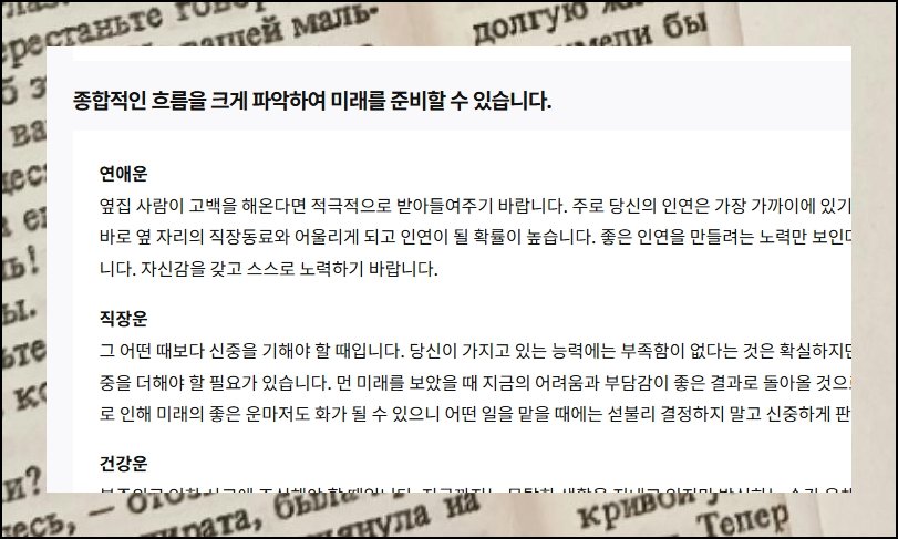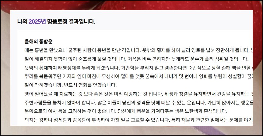 | 무료 오행사주풀이 해석 제대로보기 (0) | 2025.06.06 |