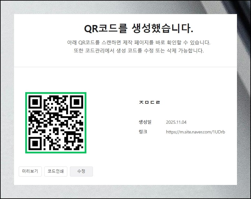 만들기 완료한 QR코드를 미리보기로 점검해보세요. 이메일이나 모바일로 즉시 전송할 수 있습니다. 저장 과정도 매우 간단해요. 필요한 순간에 빠르게 꺼내서 효과적인 정보 전달이 가능합니다.