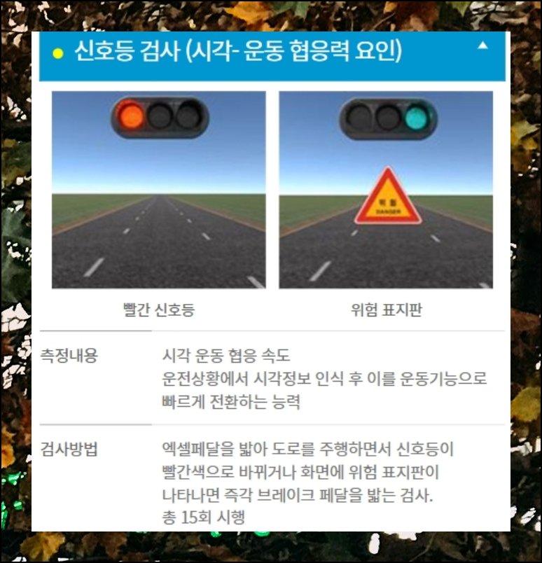 자격유지검사가 어떻게 진행되는지 신청 전에 미리 파악해두면 실제로 응시할 때 훨씬 수월합니다. 총 일곱 가지 항목으로 구성돼요. 처음 세 가지 방법을 살펴볼게요. 시야가 얼마나 넓게 확보되는지 측정합니다. 신호등 색상이 바뀌는 순간 얼마나 민첩하게 대응하는지도 평가해요. 화살표 방향에 맞춰 정확하게 고를 수 있는지도 확인합니다. 도로에서 차량을 안전하게 조종하는 데 반드시 필요한 기초 역량이에요.