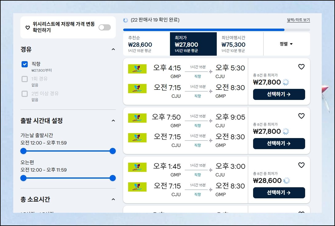 항공권 통합 검색 사이트를 활용하면 비행기표 최저가를 빠르게 파악할 수 있어요. 제주로 향하는 노선은 포털에서도 곧바로 조회가 가능합니다.