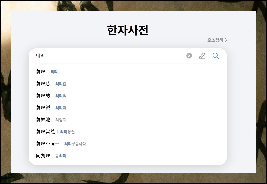 전용 창이 뜨면 상단 입력란을 활용해보세요. 알고 싶은 문자의 한글 발음을 적기만 하면 됩니다. 개별 음절 단위로 넣어도 좋고 복수 음절 어휘를 통째로 타이핑해도 무방해요. 고전 표현도 동시에 표출됩니다. 사자성어 계열은 앞 두 음절만 치면 충분하고요. 자동 추천 기능이 작동하기 때문에 빠르게 원하는 한자를 조회할 수 있어요.