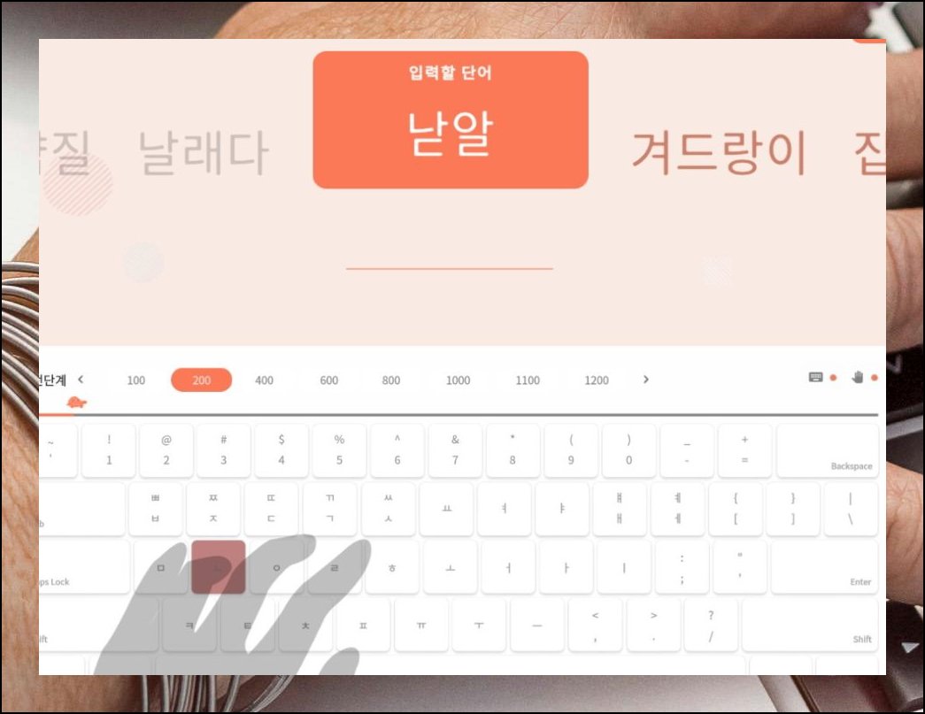 앱을 처음 작동시키면 닉네임을 적는 창이 뜹니다. 입력해도 되고 넘기고 곧바로 진입해도 문제없어요. 기본 글쇠 연습에서 상급 문장 완성까지 순차적으로 잘 구성되어 있습니다. 케이크던지기나 바다 구출 같은 오락 요소도 들어 있어서 타자 연습이 질리지 않아요. 재미가 붙으니 자연스레 매일 손이 갑니다.